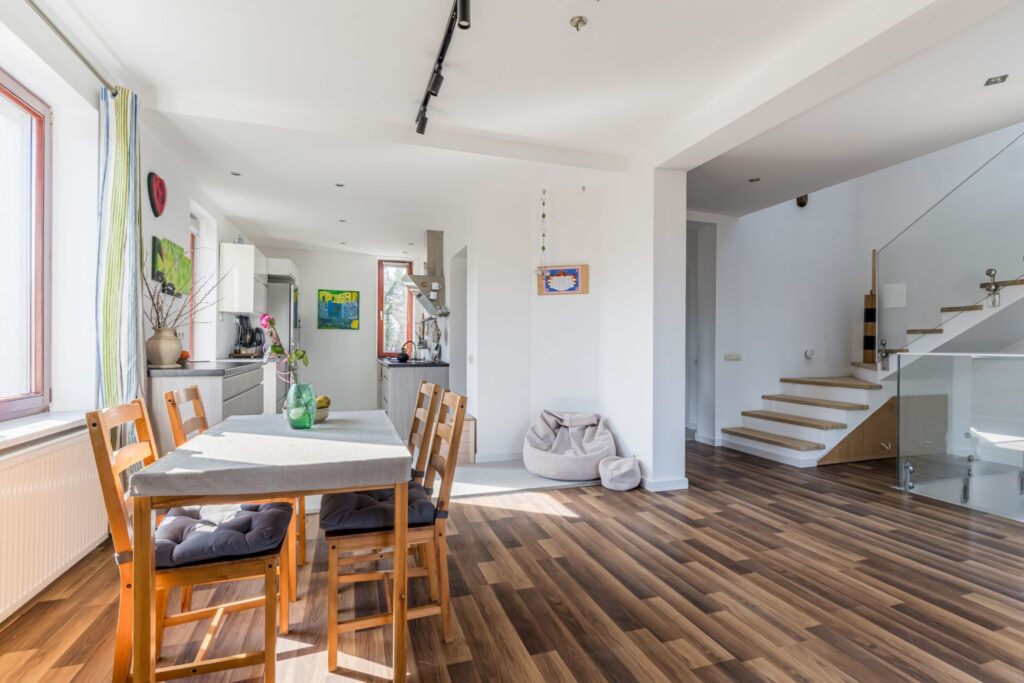 Ten dom to coś więcej niż nieruchomość — to przestrzeń, w której od pierwszego kroku czuć dobrą energię i swobodę. Nieszablonowy, zaprojektowany z sercem i ogromną dbałością o komfort, emanuje spokojem, ciepłem i naturalną harmonią. Położenie tuż przy rzece, otoczenie zieleni oraz duże przeszklenia wprowadzające światło sprawiają, że codzienność płynie tu wolniej i przyjemniej.